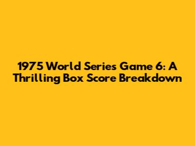 1975 World Series Game 6: A Thrilling Box Score Breakdown