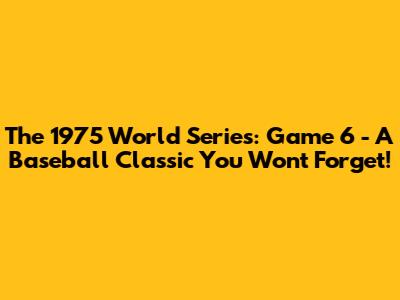 1975 World Series Game 6: A Baseball Classic