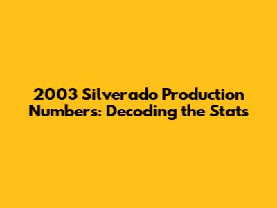2003 Silverado Production Stats: A Deep Dive
