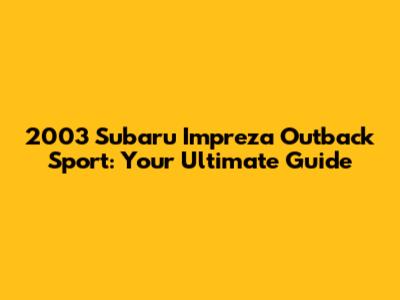 Understanding the 2003 Subaru Impreza Outback Sport