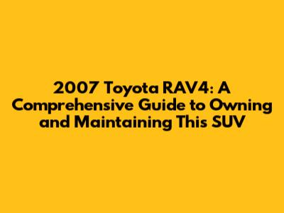 2007 Toyota RAV4: Review, Problems, & Solutions