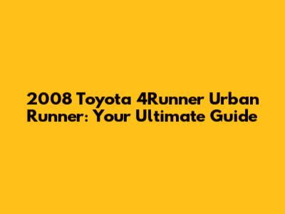 2008 Toyota 4Runner Urban Runner: A Comprehensive Guide