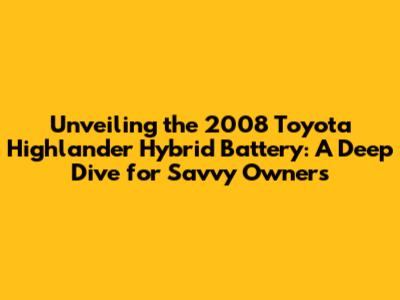 2008 Toyota Highlander Hybrid Battery Guide