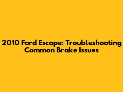 2010 Ford Escape: Troubleshooting Common Brake Issues