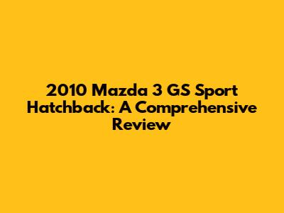 Hey guys! Let's dive deep into the 2010 Mazda 3 GS Sport Hatchback. This car isn't just a ride; it's a statement. Known for its sporty handling, fuel efficiency, and practical hatchback design, the 2010 Mazda 3 GS Sport is a popular choice for those seeking a fun and reliable vehicle. Whether you're a first-time buyer or a seasoned car enthusiast, understanding the ins and outs of this model can help you make an informed decision. From its performance and fuel economy to its interior features and potential maintenance, we'll cover everything you need to know.