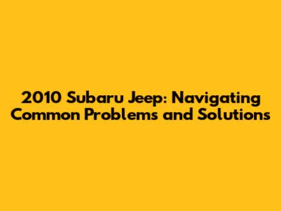 2010 Subaru Jeep: Common Issues & How To Fix Them