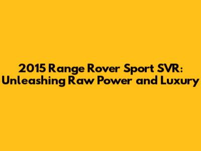 2015 Range Rover Sport SVR: Ultimate Guide