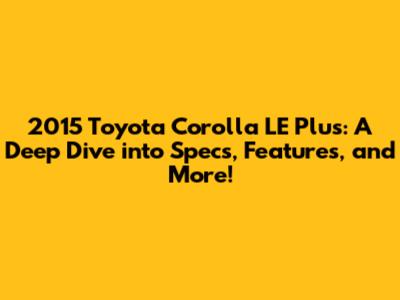 2015 Toyota Corolla LE Plus Specs: Engine, Performance, and Fuel Efficiency