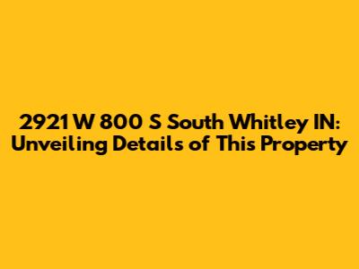 Hey guys! Let's dive into everything you need to know about the property located at 2921 W 800 S, South Whitley, IN. Whether you're a potential buyer, a curious neighbor, or just someone interested in real estate, this comprehensive guide will provide you with all the essential details.