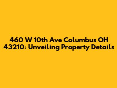 Hey there, real estate enthusiasts! Let's dive deep into the property located at 460 W 10th Ave Columbus OH 43210. This address is more than just a string of numbers and letters; it's a gateway to understanding a specific piece of real estate in the vibrant city of Columbus, Ohio. We're going to explore what makes this location tick, the potential of the property, and what you might want to know if you're considering it. So, grab a coffee, settle in, and let's unravel the story behind 460 W 10th Ave Columbus OH 43210.