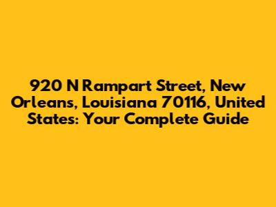920 N Rampart St, New Orleans: Your Complete Guide