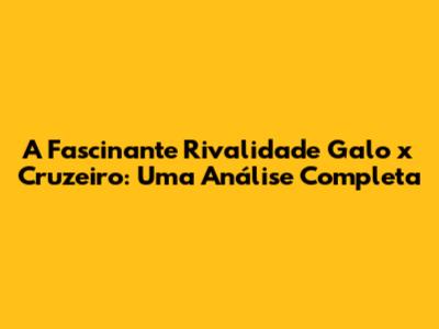 A Fascinante Rivalidade Galo X Cruzeiro: Uma Análise Completa