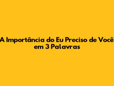 A Importância Do Eu Preciso De Você Em 3 Palavras