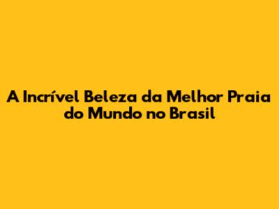 A Incrível Beleza Da Melhor Praia Do Mundo No Brasil