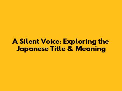 A Silent Voice: Exploring The Japanese Title & Meaning