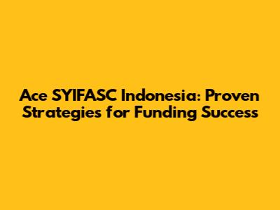 Ace SYIFASC Indonesia: Proven Strategies For Funding Success