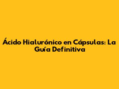 Ácido Hialurónico En Cápsulas: Guía Completa Y Beneficios