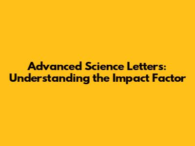 Advanced Science Letters: Understanding The Impact Factor
