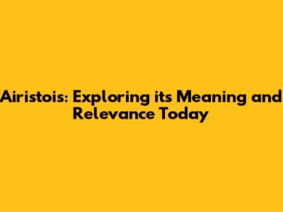Airistois: Exploring Its Meaning And Relevance Today