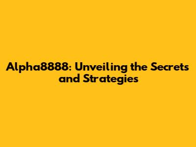 Alpha8888: Unveiling The Secrets And Strategies