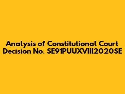 Analysis Of Constitutional Court Decision SE91PUUXVIII2020SE