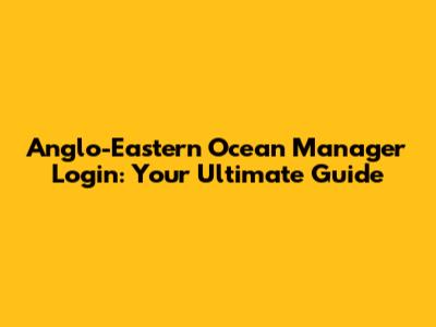 Anglo-Eastern Ocean Manager Login: Your Guide
