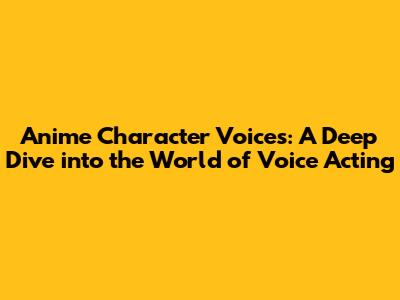 Anime Character Voices: A Deep Dive Into The World Of Voice Acting