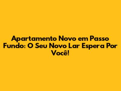 Apartamento Novo Em Passo Fundo: Guia Completo