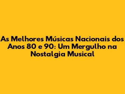Os anos 80 e 90 foram épocas de ouro para a música brasileira. A diversidade de estilos, a qualidade das letras e melodias e a energia dos shows tornaram essas décadas inesquecíveis. As músicas daquela época continuam a tocar nossos corações e a nos transportar para um tempo de alegria e emoção. Se você ainda não conhece ou quer relembrar as melhores músicas nacionais dos anos 80 e 90, aproveite essa lista para se divertir e se emocionar. A música brasileira é rica e diversa, e essas décadas são um testemunho disso. Que a nostalgia nos inspire a celebrar a música e a valorizar os artistas que nos deram tanto!