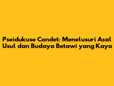 Condet, sebuah kawasan yang terletak di Jakarta Timur, memiliki sejarah dan budaya yang kaya. Salah satu aspek menarik dari Condet adalah istilah "Pseidukuse Condet." Tapi, apa sebenarnya yang dimaksud dengan Pseidukuse Condet? Mari kita telusuri lebih dalam asal usul dan makna di balik istilah ini, serta bagaimana hal itu terkait dengan identitas budaya Betawi yang khas.