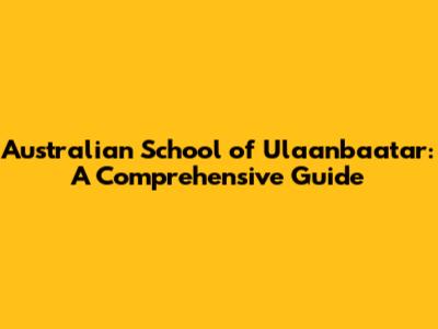 Australian School Of Ulaanbaatar: A Comprehensive Guide