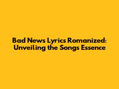 Bad News Lyrics Romanized: A Deep Dive Into The Song