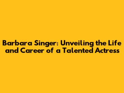 Barbara Singer: Unveiling The Life And Career Of A Talented Actress