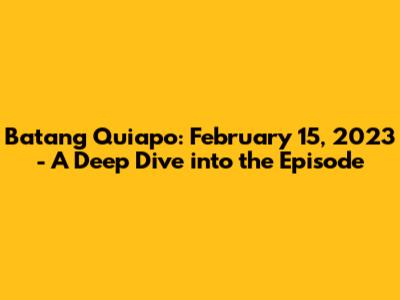 Hey everyone! Let's dive into the exciting world of Batang Quiapo, specifically the February 15, 2023 episode! For all you Pinoy Tambayan fans out there, you know this show is a rollercoaster of emotions, action, and drama. So, buckle up, because we're about to break down what happened, what it means, and where you can catch up if you missed it. This recap is designed to be your go-to guide, offering a comprehensive overview of the key events and character developments that unfolded on that particular day. We'll explore the main storylines, analyze pivotal scenes, and discuss the impact of the episode on the overall narrative of Batang Quiapo. Whether you're a long-time follower of the show or a new viewer looking to understand the hype, this is the perfect place to start. Let's get into it, shall we?