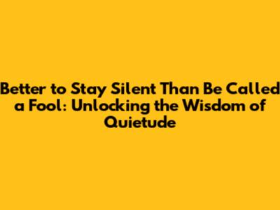 Better To Stay Silent Than Be Called A Fool