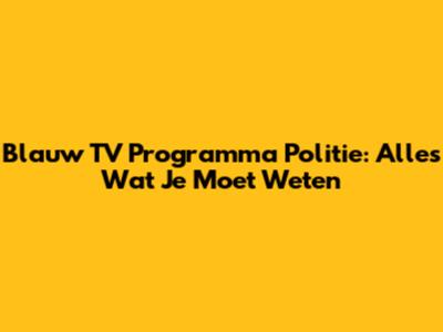 Blauw TV Programma Politie: Alles Wat Je Moet Weten