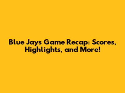Blue Jays Game Recap: Scores, Highlights, And More!