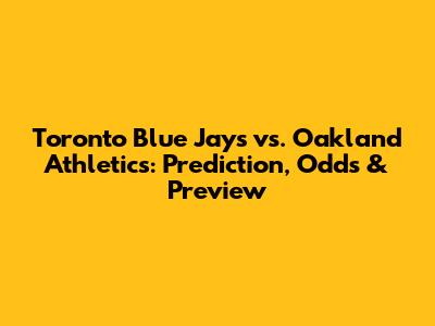 Blue Jays Vs. Athletics: Prediction, Odds & Preview