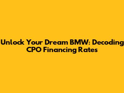 Hey guys! So, you're eyeing a Certified Pre-Owned (CPO) BMW and wondering about the financing? You're in the right place! Getting behind the wheel of a luxury car shouldn't be a headache, and understanding BMW CPO financing rates is key to making it a smooth and smart financial decision. We're going to break down what these rates mean, how they work, and what you can do to snag the best possible deal. Think of this as your ultimate guide to making that dream BMW a reality without breaking the bank. We'll cover everything from the basics of CPO programs to the nitty-gritty of interest rates, helping you navigate the process with confidence. Let's dive in and make sure you're getting the most bang for your buck when financing your next premium ride!