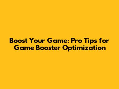 Boost Your Game: Pro Tips For Game Booster Optimization