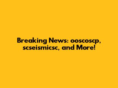 Breaking News: Ooscoscp, Scseismicsc, And More!