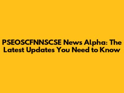 Breaking News: PSEOSCFNNSCSE Alpha Update