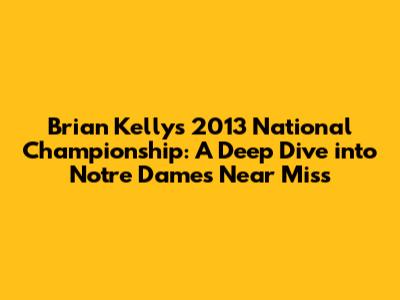 Brian Kelly's 2013 Championship Run: A Deep Dive