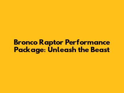Bronco Raptor Performance Package: Unleash The Beast