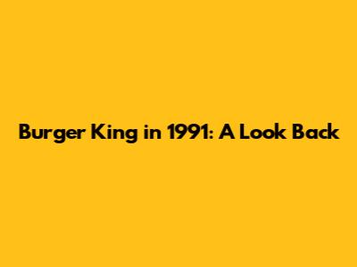 Burger King In 1991: A Look Back