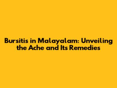 Bursitis In Malayalam: Understanding The Pain And Treatment