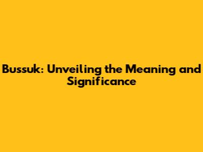 Bussuk: Unveiling The Meaning And Significance