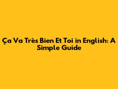 Ça Va Très Bien Et Toi In English: A Simple Guide