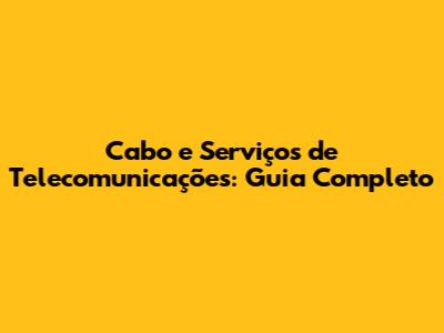 Cabo E Serviços De Telecomunicações: Guia Completo