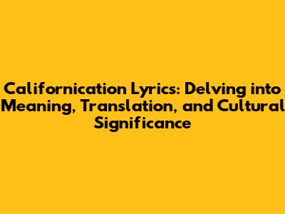 Californication Lyrics: Meaning, Translation & Cultural Impact